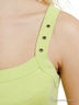 Однотонный топ в рубчик 1x1, с окантовкой и 3 люверсами на бретелях шириной 2,5 см. Боковые разрезы 6 см для разм.50-52
