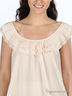 Двухслойный воздушный топ расклешенного покроя. Широкая горловина, декорированная плиссированными оборками.