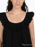 Двухслойный воздушный топ расклешенного покроя. Широкая горловина, декорированная плиссированными оборками.