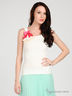 Детали: круглый вырез и пройма окантованы трикотажными лентами; декоративная нашивка на бретели