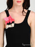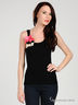 Детали: круглый вырез и пройма окантованы трикотажными лентами; декоративная нашивка на бретели