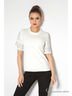 Очаровательный топ с короткими рукавами и округлым вырезом горловины. Рукава отделаны вышивкой и бусинами. Отличный вариант на каждый день.