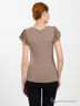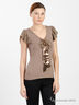 Очаровательный топ облегающего покроя с короткими рукавами и V-образным вырезом горловины. Модель декорирована рюшами и пайетками спереди.