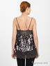 Очаровательный топ облегающего покроя на тонких бретелях. Модель декорирована кружевом и пайетками.