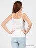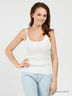 Вязанный топ прилегающего силуэта на узких лямочках. По низу изделия резинка, спереди - декоративная вышивка бисером в тон изделия. Отличный вариант на каждый день.