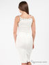 Детали: вырез каре горловины, тонкие бретели декорированы рюшей и цветком.