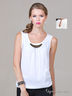 Топ с короткими рукавами и округлым вырезом горловины. Модель свободного кроя выполнена из качественного материала. Отличный вариант на каждый день. Спереди изделие украшено декоративным элементом.