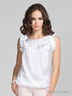 Топ с короткими рукавами и округлым вырезом горловины. Модель свободного кроя выполнена из качественного материала декорировано рюшами. Это изделие станет замечательной вещью для Вашего гардероба, которая подчеркнет Ваш вкус и подарит максимальный комфорт.