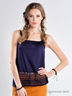 Тонкое вискозное полотно. Перед украшен вставкой из матового кружева. Горловина и бретели выполнены из плетеных косичек. Верхняя линия топа обработана с открытым срезом, на который закреплена декоративная косичка.