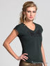 Очаровательный топ с короткими рукавами и v-образным вырезом горловины. Модель прямого кроя выполнена из качественного материала привлекательной расцветки. Отличный вариант на каждый день. Спереди изделие украшено декоративным элементом.