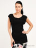 Замечательный топ приталенного силуэта, на широких бретелях. Модель с округлым вырезом горловины, лиф декорирован небольшой драпировкой. Отличный вариант на каждый день.