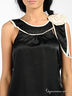 Атласный топ расклешенного покроя. Круглая горловина. Плечо декорировано крупной розой и лентами. Застегивается на молнию сбоку.