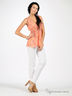 Батистовый топ с набивным рисунком. V-образный вырез с нахлестом. На талии многорядная резинка.