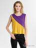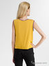 Трикотажный топ с фигурной отлетной деталью из контрастного шифона. Модель свободного кроя с округлым вырезом горловины на широких бретелях. Отличный вариант для повседневной носки.