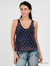 Детали: V-образный вырез горловины, завышенная линия талии на резинке, полочка декорирована вышивкой, на спинке стильный принт.