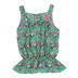 Свободная модель на лямках. На заниженном уровне талии вставлена многорядная резинка. Декоративная нашивка на полочке.