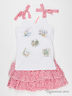 Очаровательный комплект состоит из двух предметов: юбка и топ. Топ на регулируемых бретелях контрастной расцветки. Спереди модель декорирована принтом. Юбка выполнена из легкого материала в виде рюш. Отличный вариант на каждый день.