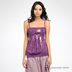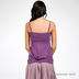 Трикотажный топ из приятного на ощупь материала. Регулируемые бретельки. Отрезной лиф. Верх спинки посажен на резинку. Манжета по низу изделия. Украшен пайетками.