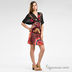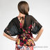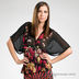 Кофта кроя кимоно из легкой полупрозрачной ткани. Глубокий вырез с нахлестом на полочке и спинке. Сзади на спине завязки. Талия посажена на многорядную резинку.