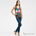 Удлиненный женский топ прямого кроя из 100% хлопка. Глубокий круглый вырез горловины. Проймы, горловина и низ изделия окантованы двойным необработанным краем. Топ украшен ярким принтом и шнурами.
