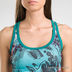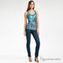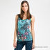 Модель со слегка приталенным силуэтом. Круглая горловина с глубоким вырезом. Спинка "борцовка". Кокетка на спине из сетки с цветным принтом. Горловина, пройма и край кокетки окантованы трикотажной лентой.