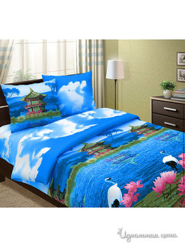Комплект постельного белья двуспальный Традиция Текстиля, цвет синий, голубой, красный