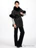 Детали: воротник стойка с мехом, застежка на пуговицы, короткие рукава с мехом, спереди два прорезных кармана, талия подчеркнута оригинальным поясом
