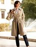 Двубортный тренчкот с поясом. Отложной воротник, застежка на пуговицы. Кокетки спереди и сзади, погоны с заклепками на плечах. Рельефные швы. 2 кармана с заклепками. Низ рукавов с планками. Внутренний карман с пуговицей. Шлица сзади. На подкладке. Длина ок.114 см. Параметры фотомодели: рост 172 см, российский размер 48.