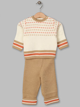 Пуловер Trikoland для мальчика, цвет бежевый с бордово-голубой полоской