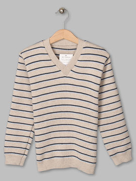Пуловер Trikoland для мальчика, цвет бежевый с сине-голубой полоской