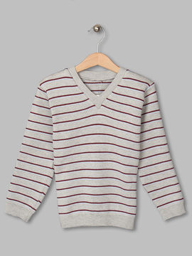 Пуловер Trikoland для мальчика, цвет серый с бордово-голубой полоской