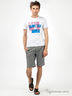 Футболка мужская классического покроя. Вырез горловины оформлен триотажной резинкой в мелкий рубчик. Изделие декорировано прострочкой контрастного цвета и яркой аппликацией.