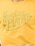 Футболка мужская классического покроя. Вырез горловины оформлен триотажной резинкой в мелкий рубчик. Изделие декорировано рисунком-аппликацией, набитым с внутренней стороны.
