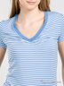 Женская футболка из нежного на ощупь трикотажа. V-образный вырез. Ворот окантован трикотажной резинкой. Короткий рукав.