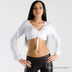 Очаровательная кофта-болеро с длинным рукавом. Имитация застежки на пуговицы спереди. V-образный вырез горловины. Рукав внизу "посажен" на резинку. Это болеро привнесет в Ваш образ нотку романтичности.