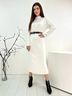 Трикотажное платье сводного кроя. Горловина стойка, по бокам разрезы.