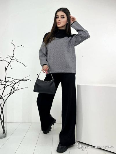 Трикотажный костюм утепленный , цвет черный/серый