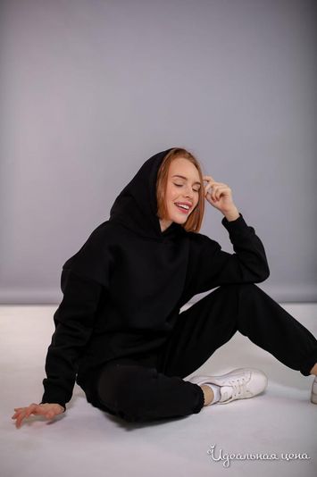 Трикотажный костюм утепленный на флисе с капюшоном и карманом кенгуру