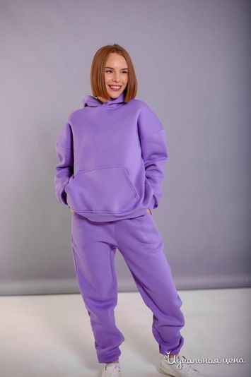Трикотажный костюм утепленный на флисе с капюшоном и карманом кенгуру