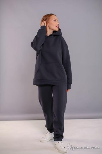 Трикотажный костюм утепленный на флисе с капюшоном и карманом кенгуру
