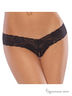 Ажурные черные трусики-тонг с заниженной линией талии выполнены из эластичного материала. Пикантный разрез украшен декоративным бантиком. Размер увеличенный универсальный.