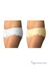 Комплект трусиков для девочек. Популярная модель трусиков-шортиков. Оригинальный крой, классическая посадка, широкий бочок дополнены отделкой эластичной резинкой с фестонным краем по линии пояса и нежным кружевом – по нижним срезам изделия. Передняя деталь трусиков.