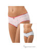 Трусики выполнены из высококачественного трикотажа с добавлением эластана для улучшенной посадки на фигуре и снижения риска деформации при стирке. Обе модели белого цвета представлены в двух вариантах дизайна:
