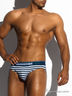 Стильные мужские трусы облегающего типа, комфортной посадки, с анатомическим рельефным кроем. Эффектный широкий пояс с логотипом, сплетённый из особых шёлковых нитей, подчеркивает спортивную стилистику изделия. Модель выполнена в модном принте «тельняшка» из трикотажного полотна с добавлением эластана.