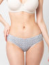 Набор трусиков бикини из высококачественного хлопка с эластаном. В составе три трусика с различными принтами: на меланжевом полотне "полоска" и "надписи" , на розовом полотне принт "горошек".