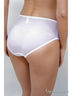 Трусы с широкой линией бока выполнены из тонкой ажурной сетки. По боковому краю передней детали вставка из вышивки на сетке. Ластовица из хлопка. Модель привлекает лаконичностью своего дизайна. Отличный вариант для женского гардероба.