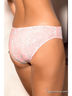 Трусы выполнены из принтованной микрофибры. Спереди по центру большая треугольная вставка из вышивки на сетке. Спереди симметричные наклонные рельефы, украшенные вышитой тесьмой. Ластовица выполнена из хлопка.
