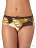 Низкие трусики-шорты. Лента шоколадного цвета проходит вокруг талии и посередине украшена переплетенными кольцами.