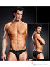 Мужские бикини черного цвета из микрофибры полностью закрывают ягодицы. Спереди трусы с очень низкой посадкой на бедрах с молнией.