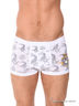 Трикотажные трусы боксеры анатомического кроя украшены рисунком и принтом.